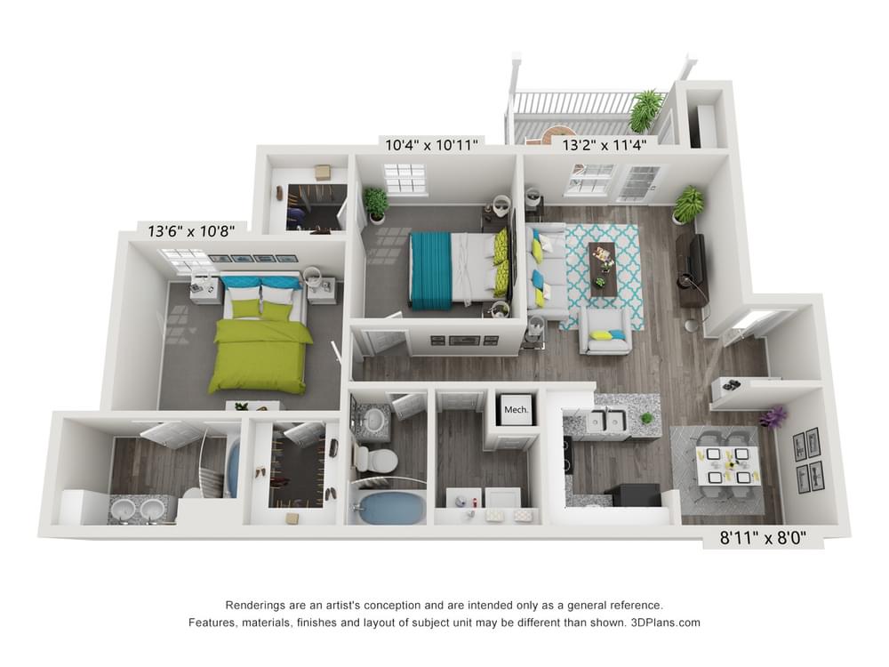 Unit Type2 Bed / 2 BathFloor Area1,386 sq. ft.AvailableTodayStarting at$1,526 / mo